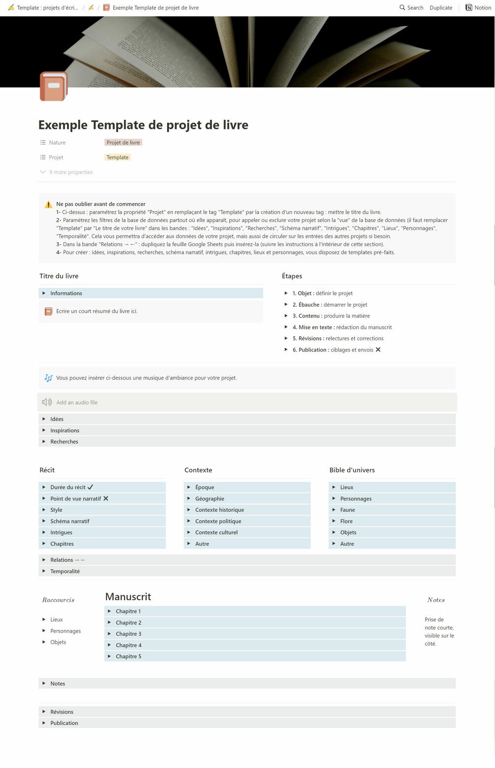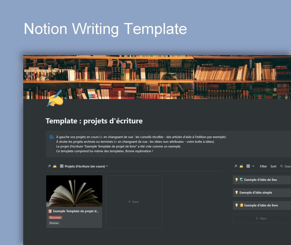 - 1 template pour vos projets d'écriture